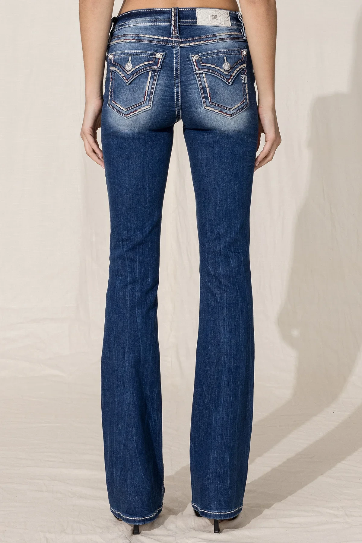 Miss Me Women’s Mid Rise Burgundy & Taupe Stitching Jean